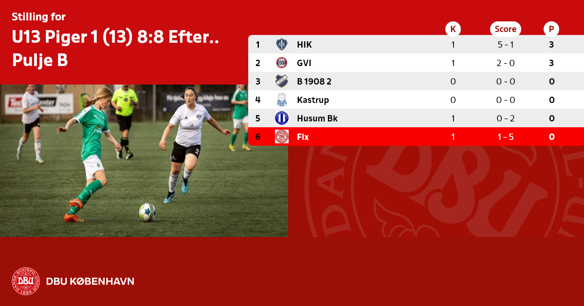 U13 Piger 1 (13) 8:8 Efterår dommerløs, Pulje B