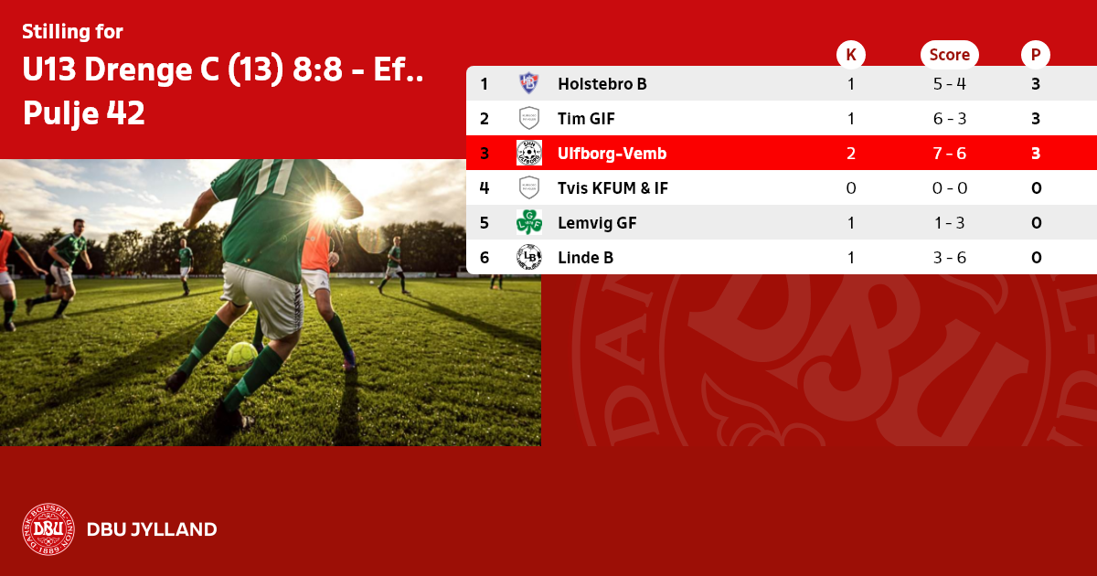 Hjemmeholdet er ansvarlige for registrering af kampens resultat via DBU’s Fodbold App eller via ”Mit DBU” på www.dbujylland.dk.